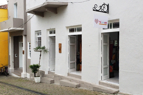 Com sede localizada no coração do Centro Histórico de São Francisco do Sul, nosso espaço compõe a fábrica, onde nossas máquinas estão instaladas e os alunos e tecelões trabalham, além da estrutura de uma charmosa loja, aberta de segunda a sexta das 8 às 17h que oferece ao público o resultado de todo esse trabalho.